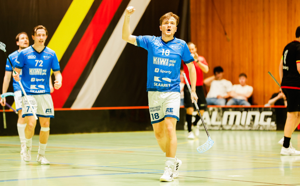 Måål!! Jakob Grøstad bidro til at det ble meget spennende mot slutten av kampen med sin nettkjenning (Foto: Innebandyavisen)